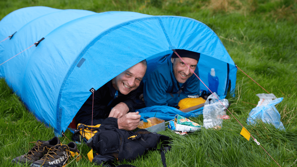 Day two dawned with some cloud on the hills and dampness on the ground courtesy of a shower during the night, but the forecast was for improvement as the day progressed. Paddy Mallon strolled around the campsite singing his traditional rendition of “Danny Boy” – his way of waking competitors up and I noted that he received a well deserved round of applause. From 8.00 onwards teams set out on their courses and by 8.45 the tent village was virtually gone, just the event tents and a few unhurried retiring teams remained. Yesterday’s second placed team of Shane Lynch & Adam Cunningham were underway right on the dot of 8.00am hoping to overcome the fourteen minute advantage of the leaders Paul Pruzina & Philip Vokes who curiously chose the opposite approach and were one of the last teams to set off.